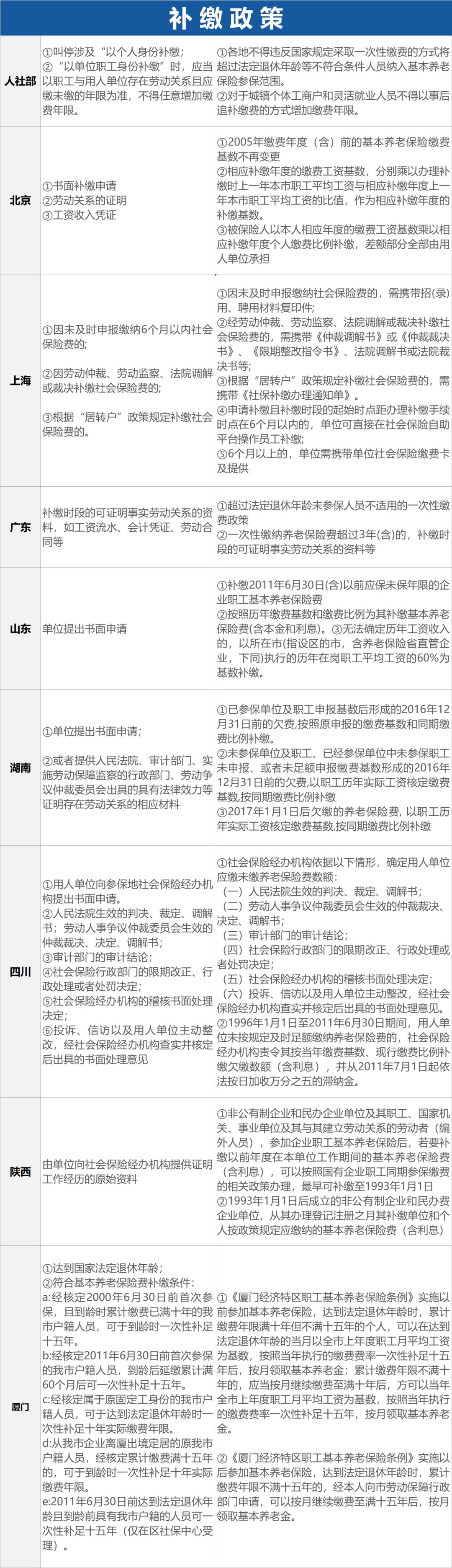 有关补缴社保的政策做如下整理,供各位读者参考,涉及到具体补缴业务时,还需要以当地社保经办部门执行的最新政策为准。